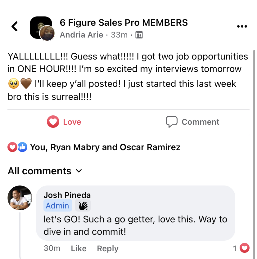 The 6 Figure Skills Academy transforms you into a highly paid, highly skilled Remote Sales Pro. Not only do we meet you at your level and give you every tool you need to succeed, we will also help you secure actual high paying remote sales positions and support you until you’re earning THOUSANDS of dollars per month before your training is even complete.