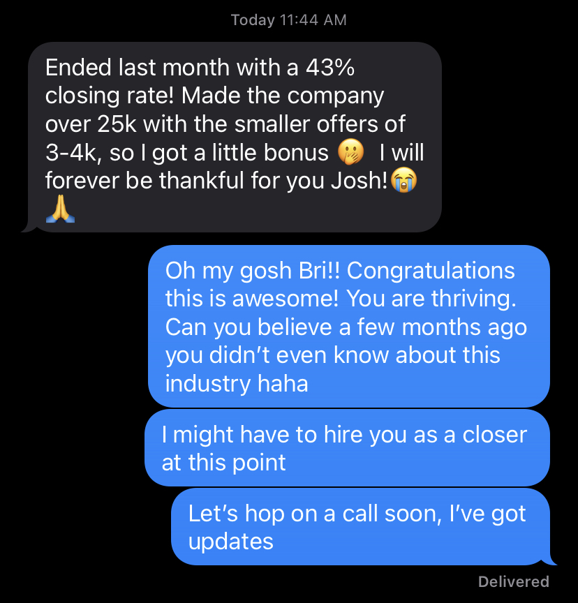 But... I Learned how to network and fill a high demand need for business owners by closing their high ticket sales calls for them - and scaled to $21,000 in earnings in a 3 week period.