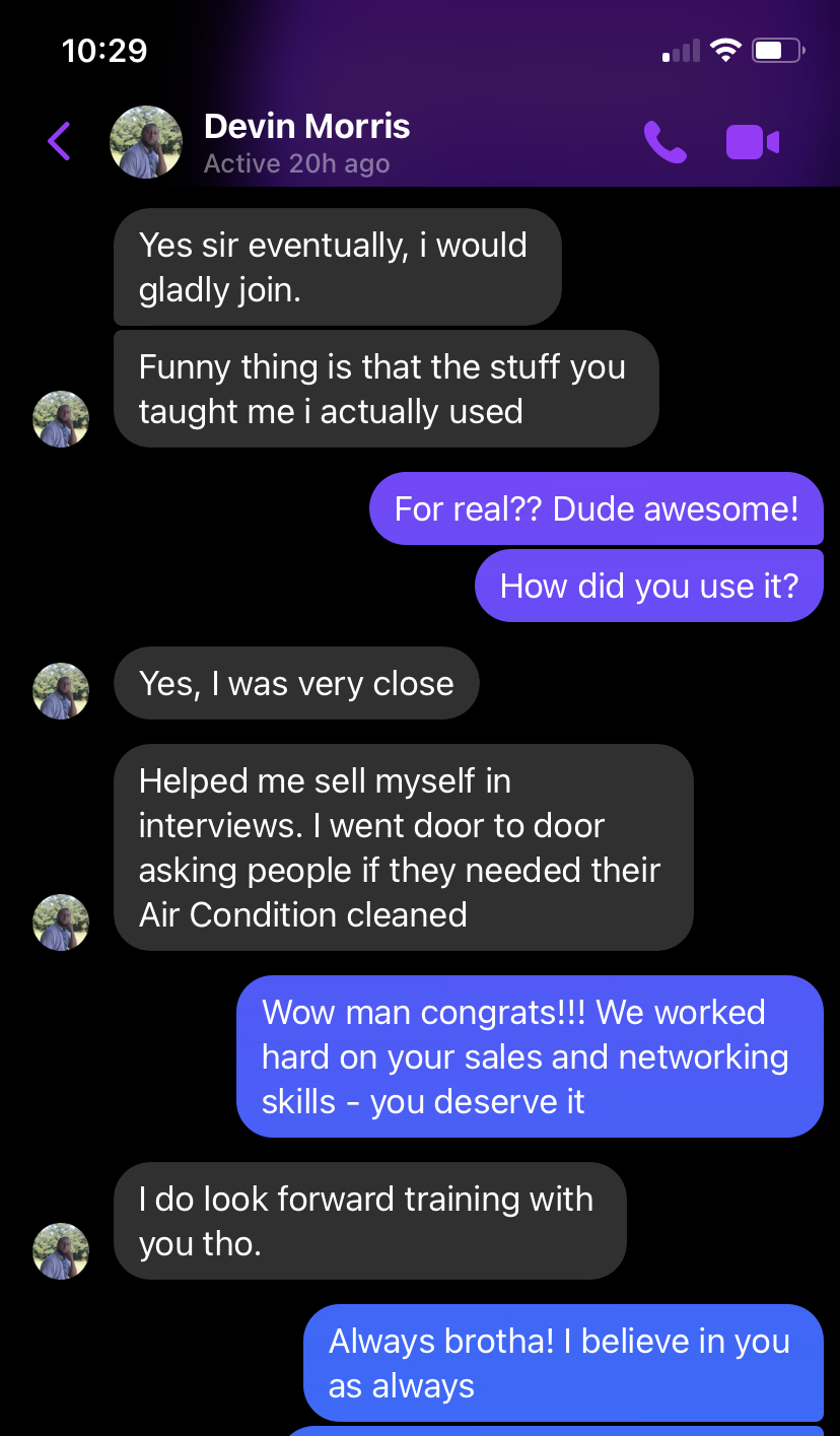 That’s what I want for you, and as your coach, my mission is to help you grow, become a master communicator and a 6 figure earning, picking your own schedule, working from anywhere you want, and living life on YOUR terms. If you entrust me with your journey, I’ll give you everything I’ve got to see you succeed.